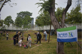 3月12日,在里水镇和顺金溪湿地公园,华特气体多名员工参加了植树活动。
