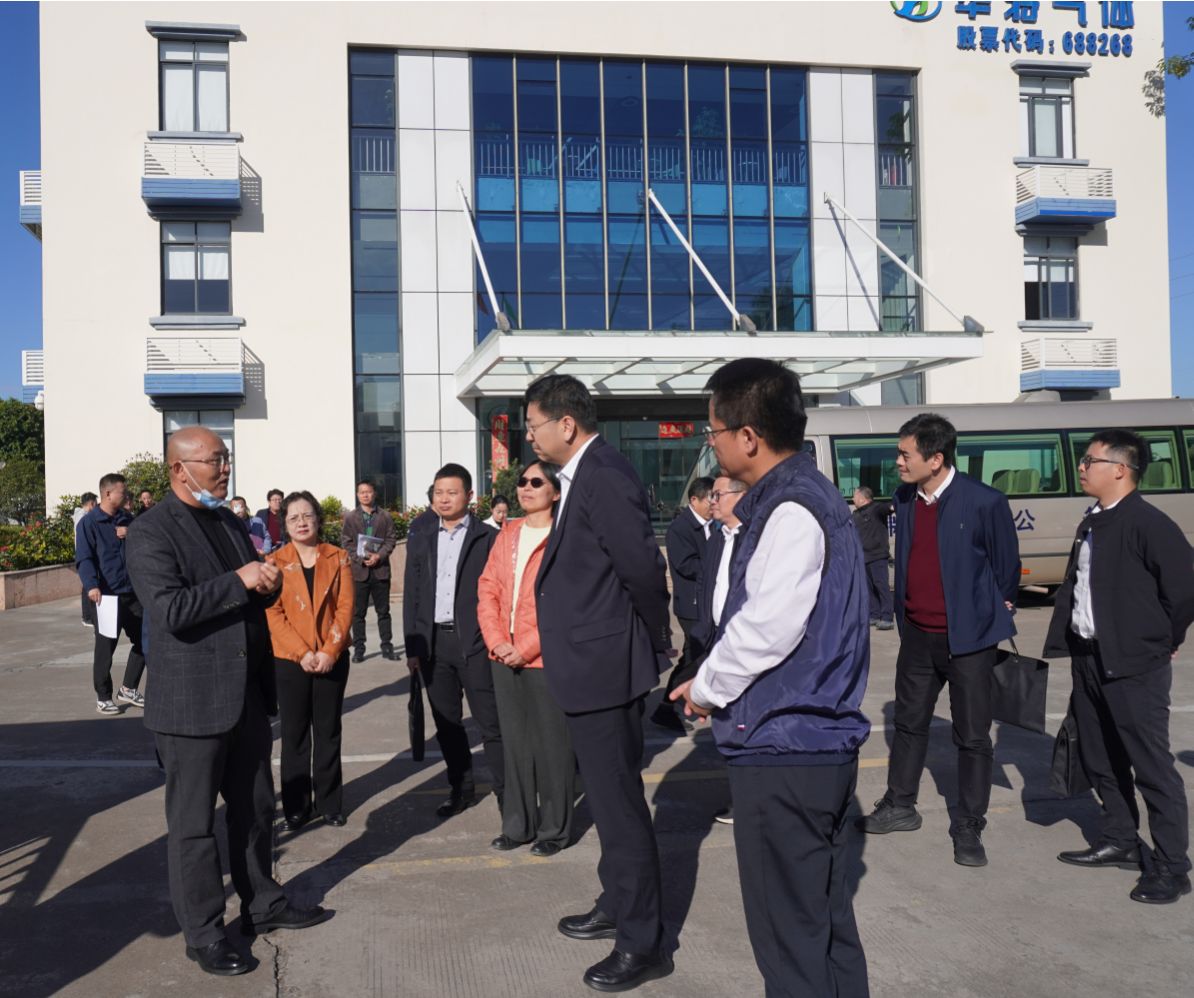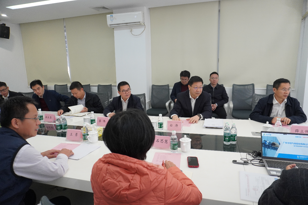 2025年11月21日下午,佛山市市长白涛率队莅临广东华特气体股份有限公司(以下简称“华特气体”)开展实地调研,为企业实现高质量发展提供指导。华特气体董事长石思慧、总经理傅铸红带领公司核心团队热情接待,并就企业发展情况作详细汇报。